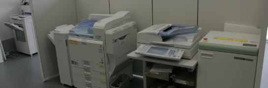 ■印刷室では聴覚障がい者の安全確認のため機械の運転状況を知らせるパトライトを設置。